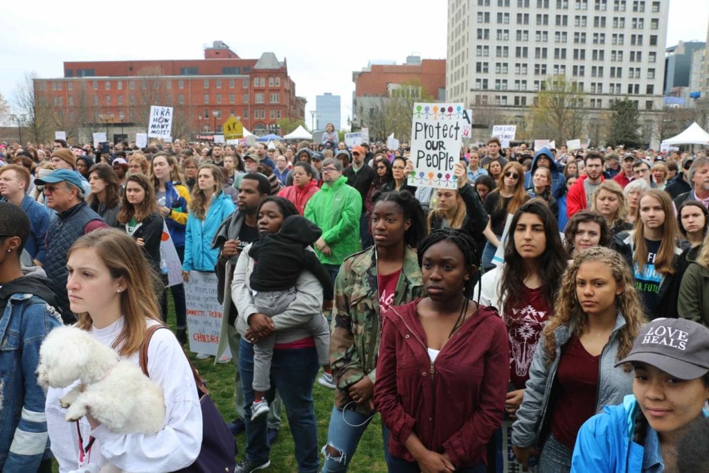The Sandy Hook school massacre was in Aimee Alexander’s town. “A gun is not worth more than a child. We march for our children … We march for those silenced by bullets and not just the bullets fired in schools. We march for the black lives lost and the black voices that have been ignored for years,” she told Saturday’s crowd at City Hall.