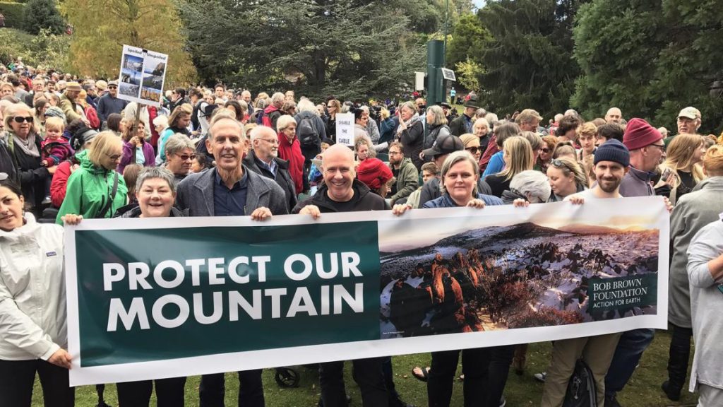 In 2018, thousands protested against the cable car at a Hobart rally headed by former Greens leader Bob Brown.