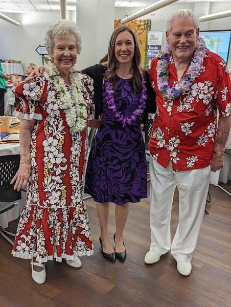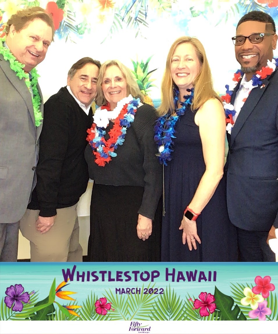 A special treat at this year’s event came from individuals in the FiftyForward Madison Station member community. Two FiftyForward Madison Station center members (Alfred St. Aubin and Mary Taylor) surprised everyone by wearing authentic Hawaiian attire (see attached photo). Perhaps the most memorable statement of the evening came from member extraordinaire Kate Joy when she said how great it was to be gathered in person after the COVID-19 shutdowns. She wowed the audience by saying, “I want to thank the staff, the volunteers, and the people who are here every day that make it worth continuing to live.”