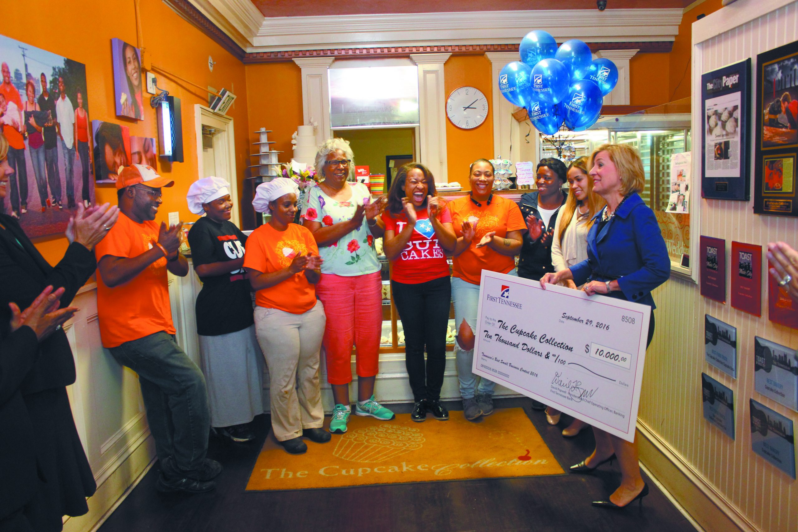 NASHVILLE, TN — First Tennessee Bank announced today that Nashville bakery The Cupcake Collection is the grand prize winner of the bank’s statewide “Best Small Business Contest,” and presented owner Mignon Francois with a check for $10,000.