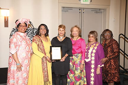 Shown with Shantrelle Johnson of Advance Financial, center, receiving the award on behalf of Tina Hodges are Janice Woodard, Luvenia Harrison, Chapter President; Edwina Hefner, Rosetta Miller Perry and Phyllis Qualls
