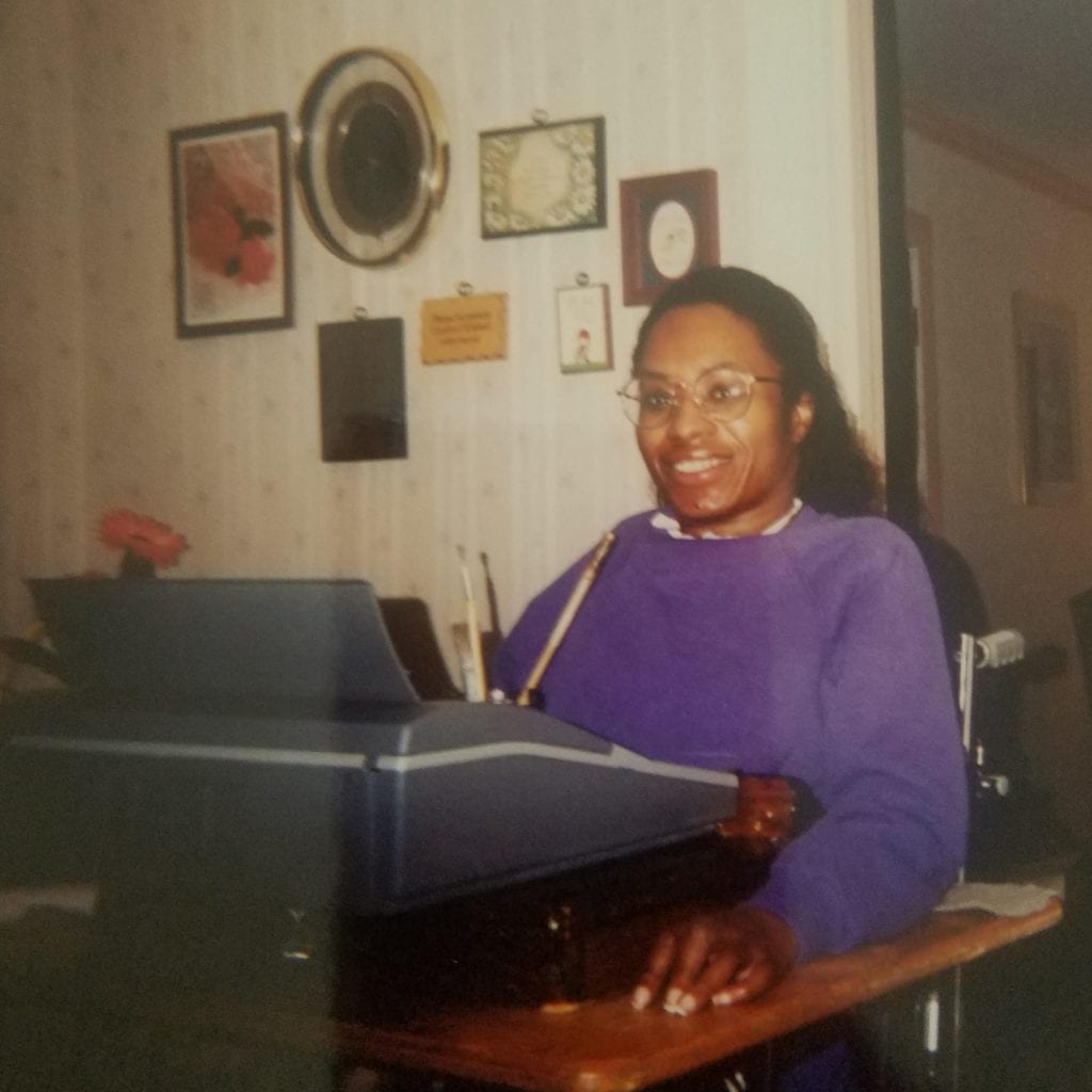The Hopkins family pulls together, providing care and feeding for Jackie whose life from a wheel chair stands as a testimonial to the power of perseverance, love and faith. She listens to gospel music and reads the Bible on her desk-top computer in her family dining room.