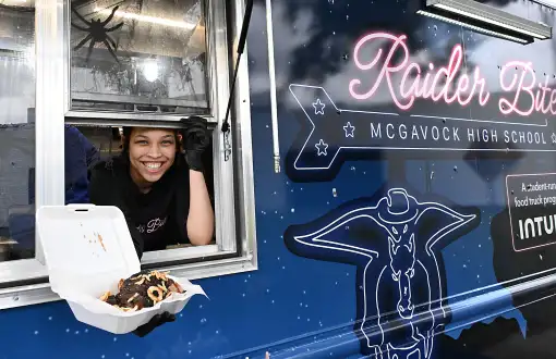 “It’s amazing to watch these students grow,” said Chef Jeannine Nava, who also drives the Raider Bites food truck. “It changes a program. It has brought me so much joy in my life, watching these kids go from sitting in a classroom, staring at each other, to getting this culinary program up and running.”