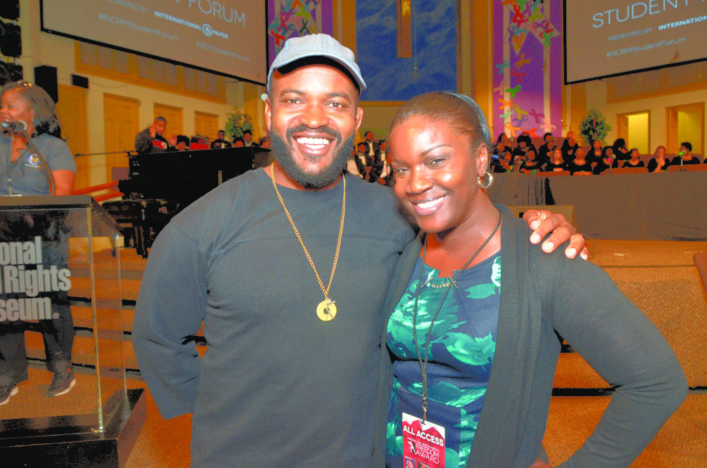 l-r; Sal Masekela, son of the Honoree Hugh Masekela and Aimee Nelly, Accounting Clerk, National Civil Rights Museum