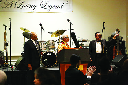 Clips of their performances on Night Train, the locally produced late night television Show, were also included. A highlight of the evening was an onstage appearance of Frank Howard, Hershel Carter, and Charles “Wigg” Walker, local entertainers and performers with Jimmy, singing some of their well-known songs from “back in the day” . The program ended with attendees dancing to the music of The Jimmy Church Band and singers Sugar and Spice.