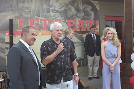 Hope Hines, center, retired sports director, WTVF NewsChannel 5 led the students in the Pledge of Allegiance and introducing David Davoudpour, left, Shoney’s Chairman/CEO, who welcomed the students to their 2nd annual Dinner for Hope.