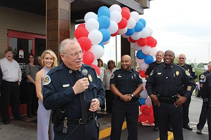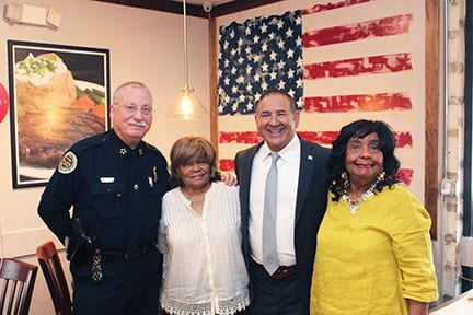 l-r; Chief Steve Anderson, Publisher Rosetta Miller Perry; David Davoudpour, Shoney’s Chairman/CEO; and Lucille McKinley