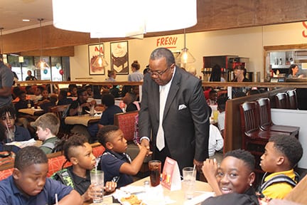Juan Gipson, Franchise Business Executive for Shoney’s, welcomes the students to Shoney’s.