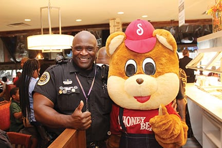 “For many of our area’s at-risk youth, their first experience with police and blue lights is watching someone being taken to jail,” said Shoney’s Chairman and CEO Mr. David Davoudpour. “We want to change that and what better way than to get a blue-light police bus escort to Shoney’s, where these young men can break bread with the men and women in blue. The police are our friends, our neighbors and our protectors. They are not to be feared and we want to show our future leaders that together we can build safer and stronger communities.”