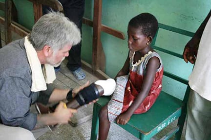 Their shared mission is to help others “stand with hope.” How do they accomplish this? Standing With Hope has two program areas: a family caregiver outreach and a prosthetic limb ministry to help others an ocean away. Through Standing with Hope’s prosthetic limb program, the Rosenbergers regularly work with Ghana Health Service in the Republic of Ghana. Recruiting volunteer US prosthetists and gathering and purchasing supplies, Standing With Hope trains and equips local workers to help build quality prosthetic limbs for their own people. This is a huge undertaking but the results are well worth all the work. “When you see the looks on their faces, you know this is the right thing,” says Peter.