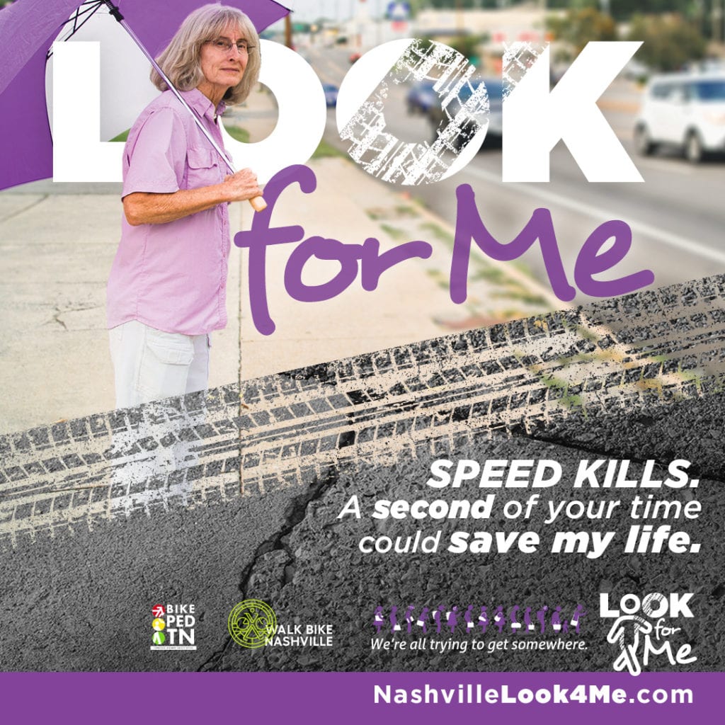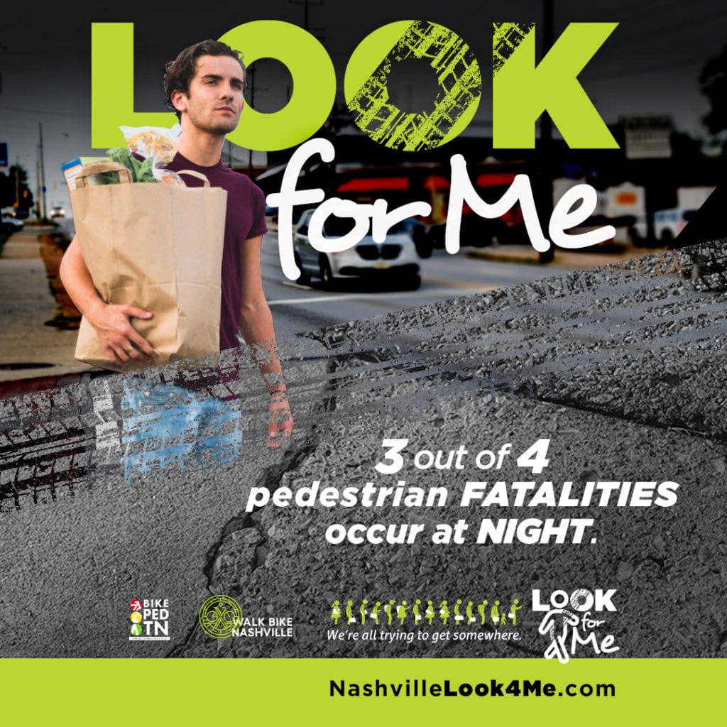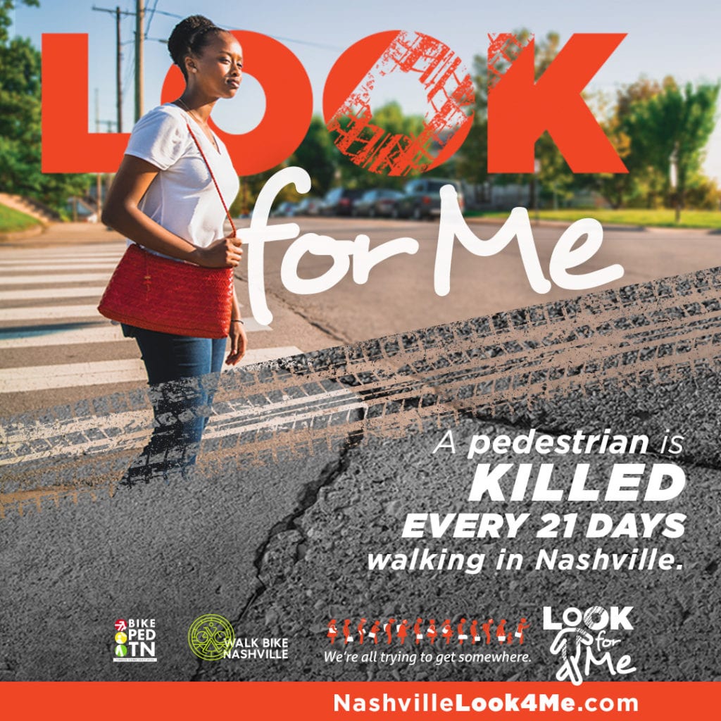 In response to the devastating rise in the number of pedestrians killed while, Walk Bike Nashville is launching the Look for Me campaign. This campaign, which is funded by the TN Highways Safety Office, seeks to raise awareness and keep people walking in our city safe.